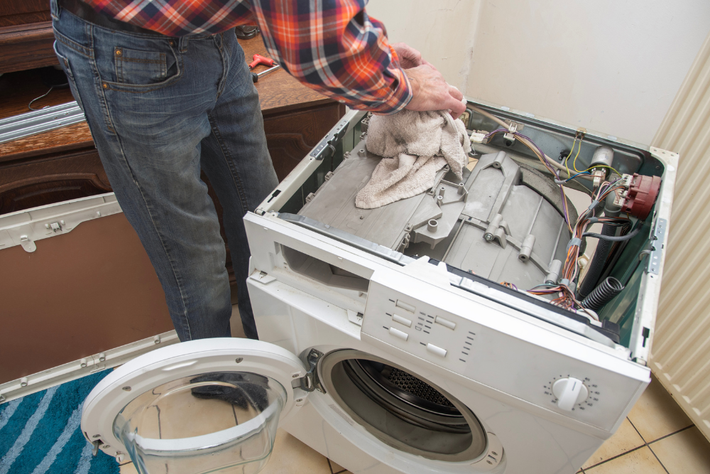 Máquina não centrifuga ou não drena a água. Vazamentos e máquina sujando a roupa. Painel acende mas não funciona. Limpeza, higienização e manutenção preventiva.